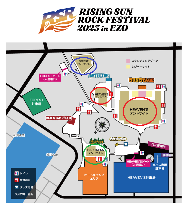 公式サイト>ご来場いただく皆さまへ>テントサイト 項目に記載がありますが